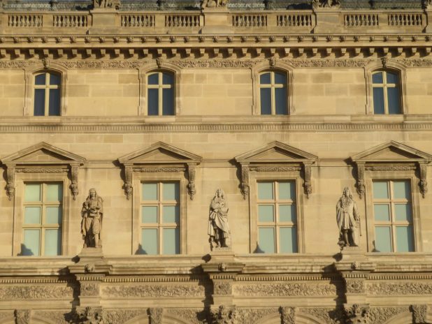 François Eudes de Mézeray, Molière et Nicolas Boileau, parmi les 86 hommes illustres installés sur le palais du Louvre sous Napoléon III. A admirer à la fin de la balade au jardin des Tuileries, Paris centre.