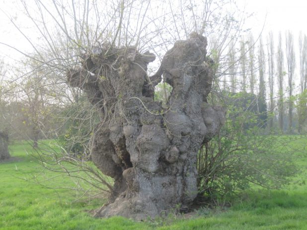 Vénérable triple U de poirier, Pyrus communis ‘Bergamote Esperen’, en contre espalier, au jardin école de la Société d’Horticulture de Montreuil, 93.