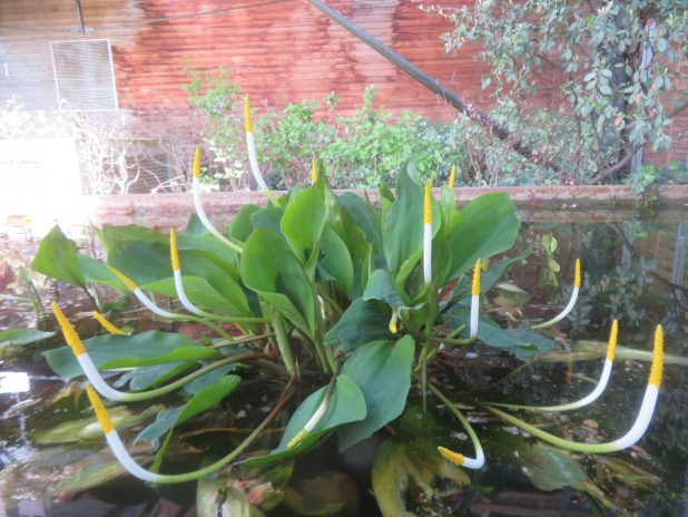 « Plante bougie », Orontium aquaticum, au jardin Rosa Luxemburg, quartier de la Chapelle, 18e.