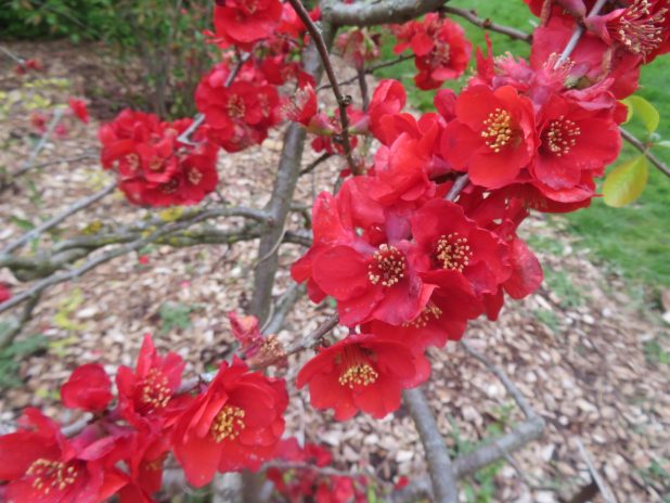 Cognassier, Chaenomeles superba, dans le fruticetum de l‘école du Breuil, 12e.