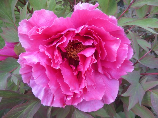 Une des pivoines arborescentes installées dans le carré Brongniart du jardin des plantes. Elles ont été offertes en 2004 par la ville de Yatsuka au Japon.