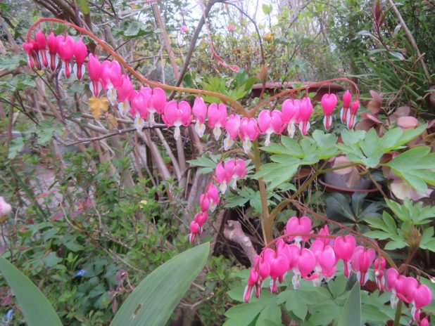Coeur de Marie, Lamprocapnos spectabilis, au jardin partagé Ecobox, quartier de la Chapelle, 18e.