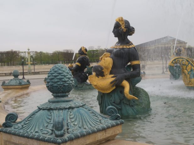 Fontaine des fleuves, installée par l’architecte Hittorff sous Louis Philippe, sur la place de la Concorde, point de départ de notre balade dans les jardins des Champs Elysées.