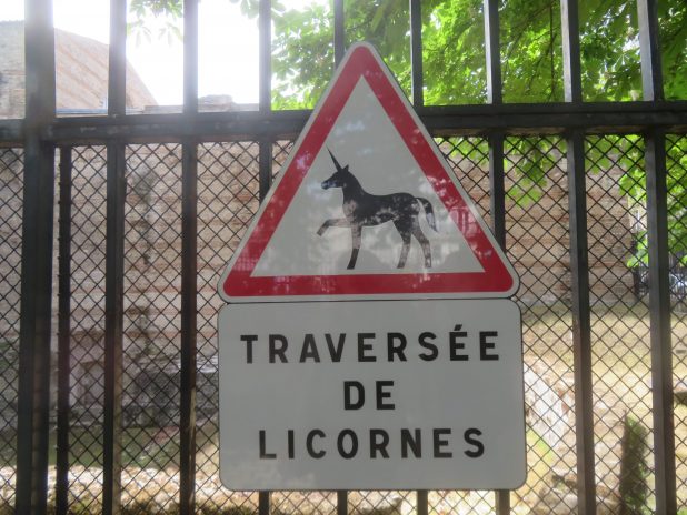 Avertissement dans le jardin médiéval du musée de Cluny, sur fond de thermes romains, à la fin de la balade dans le quartier latin, 5e.