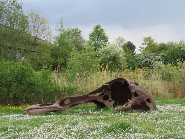 Crâne de moineau, oeuvre de Quentin Garel à admirer dans le parc du Chemin de l’Île à Nanterre, 92.