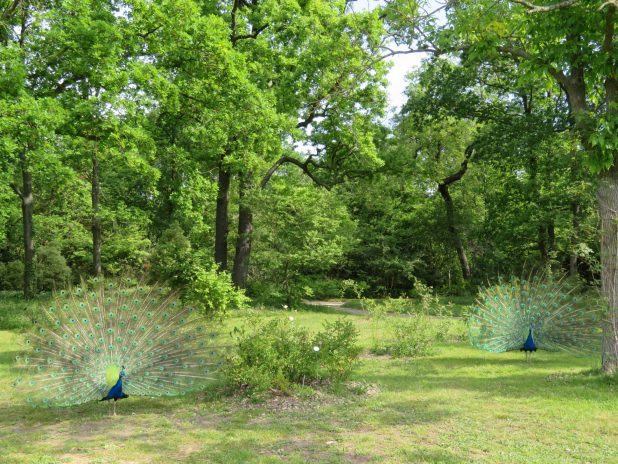 Concours de roues entre paons, au parc de Bagatelle, 16e.