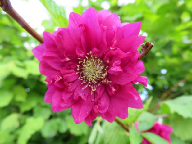 Jolie variété de ronce dans un massif d’arbustes du parc de la Chapelle Charbon, 18e.