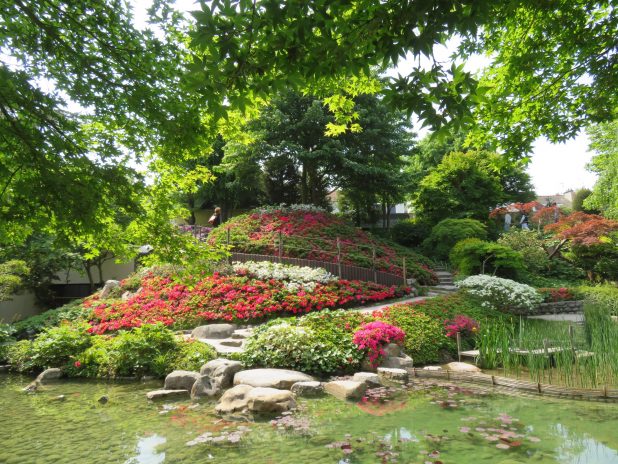 Folie du XVIIIe siècle, bordée de Rhododendron, à l’arboretum de la Vallée aux Loups, 92.