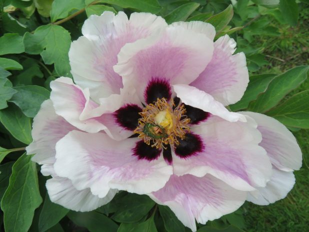 Cétoine dorée assoupie au fond d’une pivoine, Paeonia rockii, au parc floral, 12e.