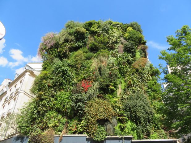 Osasis d’Aboukir du botaniste Patrick Blanc, sur le parcours des passages couverts de l’Est, Paris centre.
