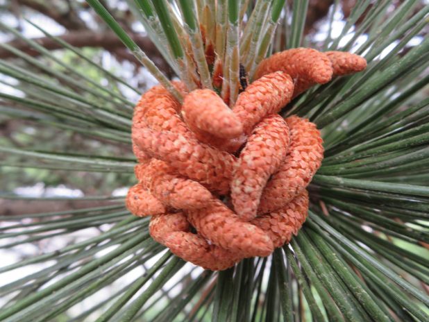 Chatons mâle de pin sylvestre, dans le parc de Billancourt, 92.