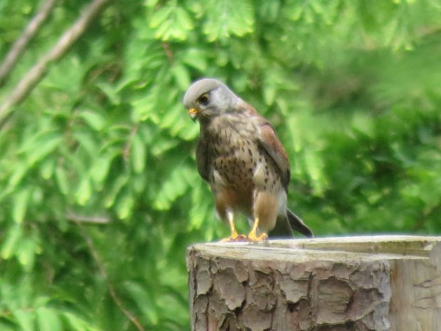 Faucon crécerelle mâle, à l’affut sur une chandelle, à l’arboretum du Breuil, 12e.
