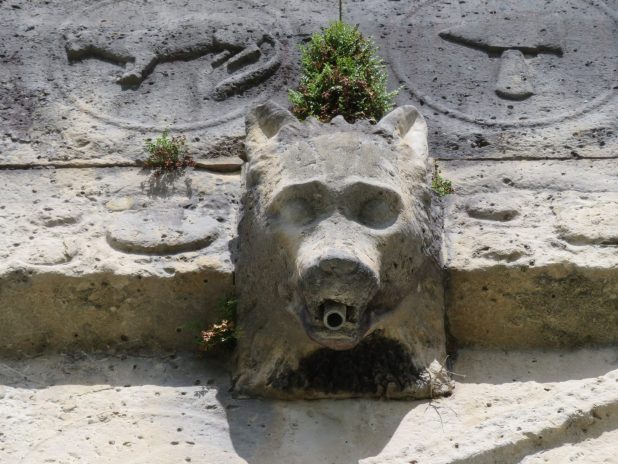 Tête de loup, piolet à sel et zibeline, sur le mausolée de la comtesse Demidoff, au cimetière du Père Lachaise, 20e.