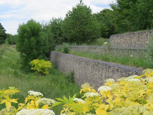Sureaux dorés dans un fossé bordé de gabions au parc des Chanteraines, 92.