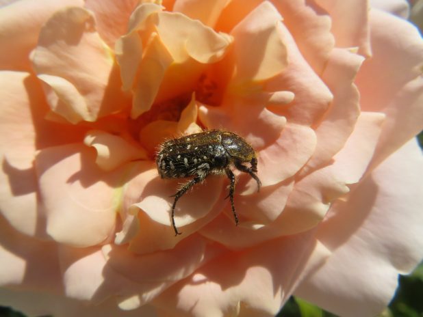 Cétoine dorée assoupie dans une rose ancienne ‘ Salet ‘, à l’école du Breuil, 12e.