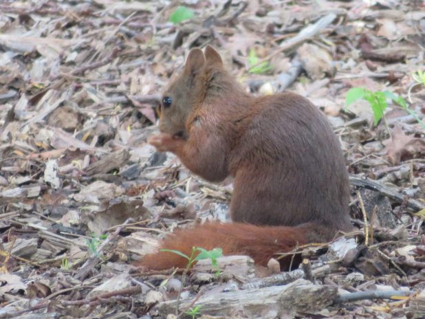 Jeune écureuil au sol dans le parc du Pré Catelan, bois de Boulogne, 16e.