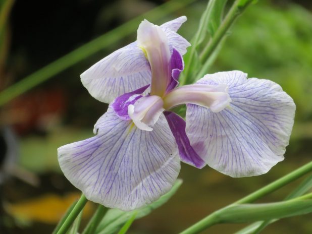 Iris japonais dans un bassin du parc de Belleville, 20e.