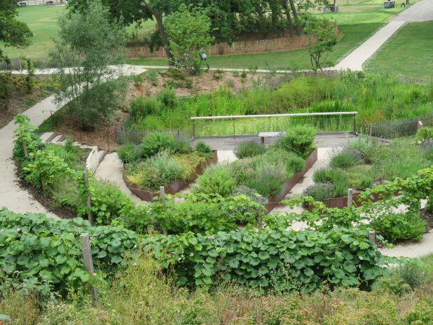 Matin tranquille dans le jardin des Vergers urbains, au parc de la Chapelle Charbon, 18e.