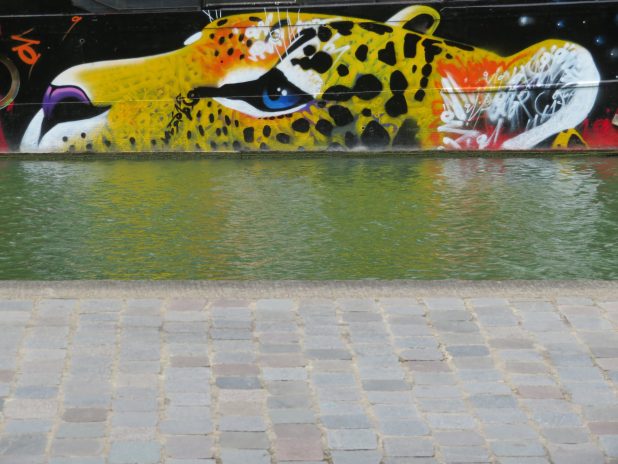 Guépard aquatique en phase d’approche dans le bassin de la Villette, 19e.