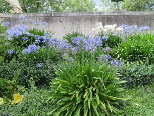 Agapanthes à gogo dans un clos du parc André Citroën, 15e.