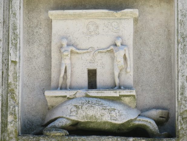 Tortue portant un temple sur le monument aux Droits de l’Homme, sur le Champ de Mars, 7e.