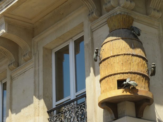 Ruche d’abeilles géante dans le quartier des Halles, Paris centre.