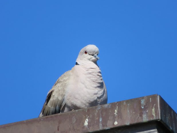 Pigeon ramier en pleine couvaison sur le belvédère du parc de Bercy, 12e.