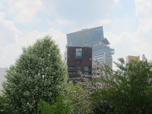 Tours Duo de Jean Nouvel, depuis le jardin des Grands moulins-Abbé Pierre, quartier Paris Rive Gauche, 13e.