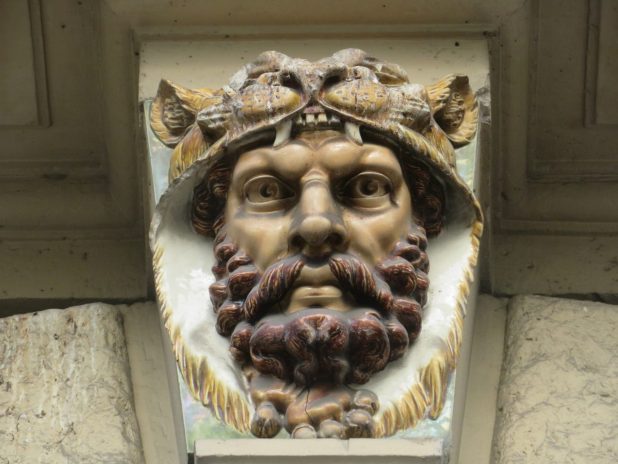 Belle tête d’Hercule polychrome, du côté de la porte de la Villette, 19e.