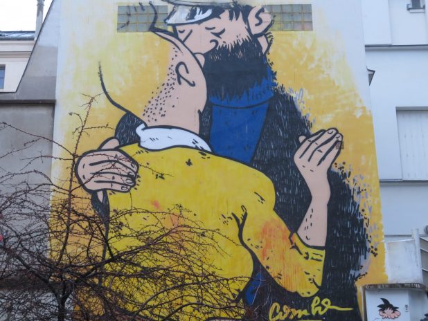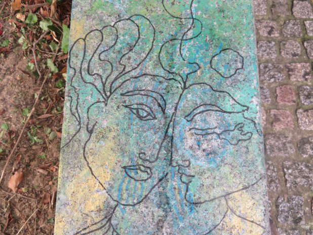 Oeuvre de Léa-LYdie-L, sur un escalier du square du Docteur Grancher, à Ménilmontant, 20e.
