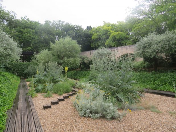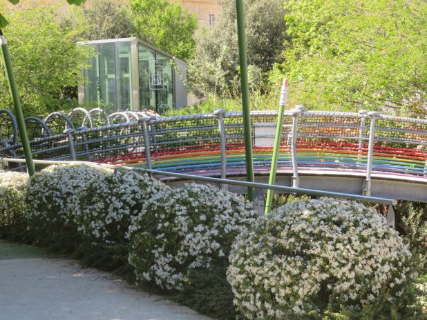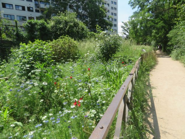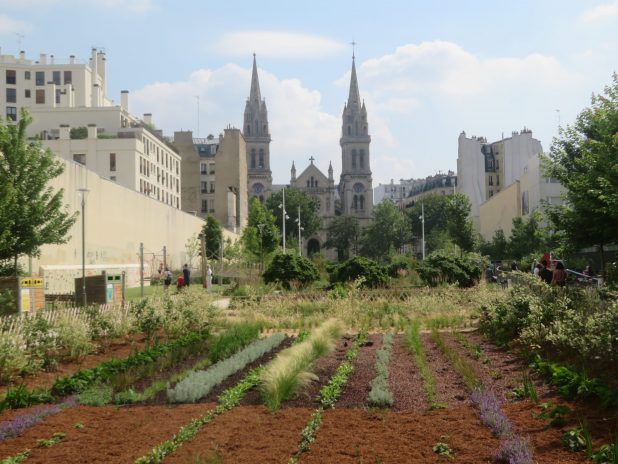 Jardin des Fermiers généreux, sur le pont au dessus des voies menant à la gare de l’Est, quartier de la Chapelle, 18e.