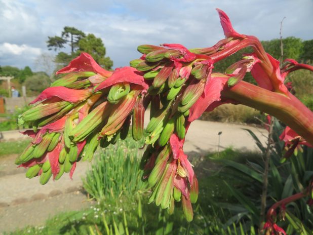 Inflorescence de Beschorneria yuccoides, dans l’école de botanique du jardin des plantes, 5e.