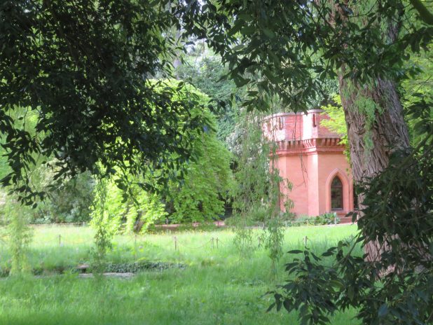 Vue romantique sur la » maison mauresque » à l’arboretum de la vallée aux Loups, 92.