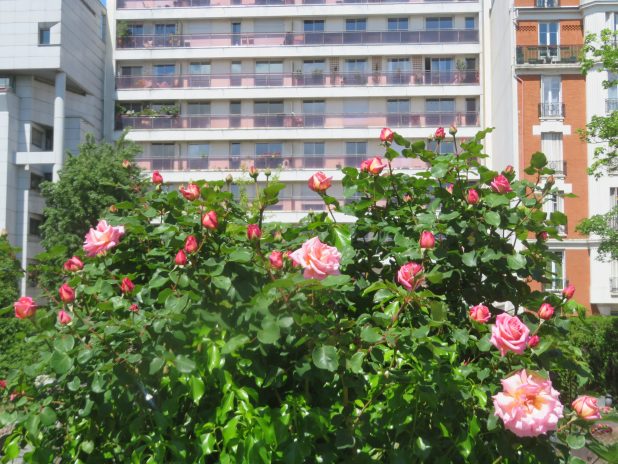 Rose ‘ Stanwell perpetual ‘ dans le square st Jacques, Paris centre.