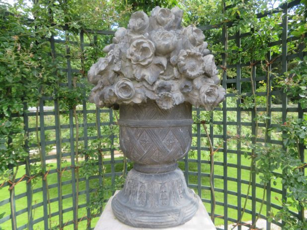 Rose ‘ Jean de la Fontaine, dans la roseraie au pied des remparts de Château Thierry, 02.