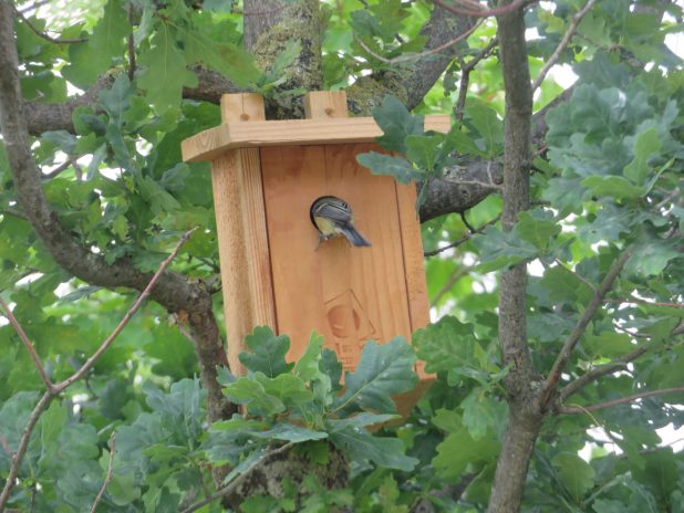 Mésange bleue venant de nourrir ses petits, à la roseraie du Val de Marne, à l’Haÿ les Roses, 94.