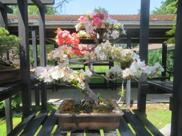 Bonsai bicolore dans le pavillon qui leurs est réservé au parc floral, 12e.