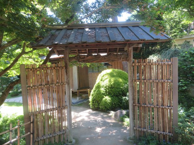 Porte séparant le » village japonais » du jardin japonais contemporain, aux jardins Albert Kahn, 92.