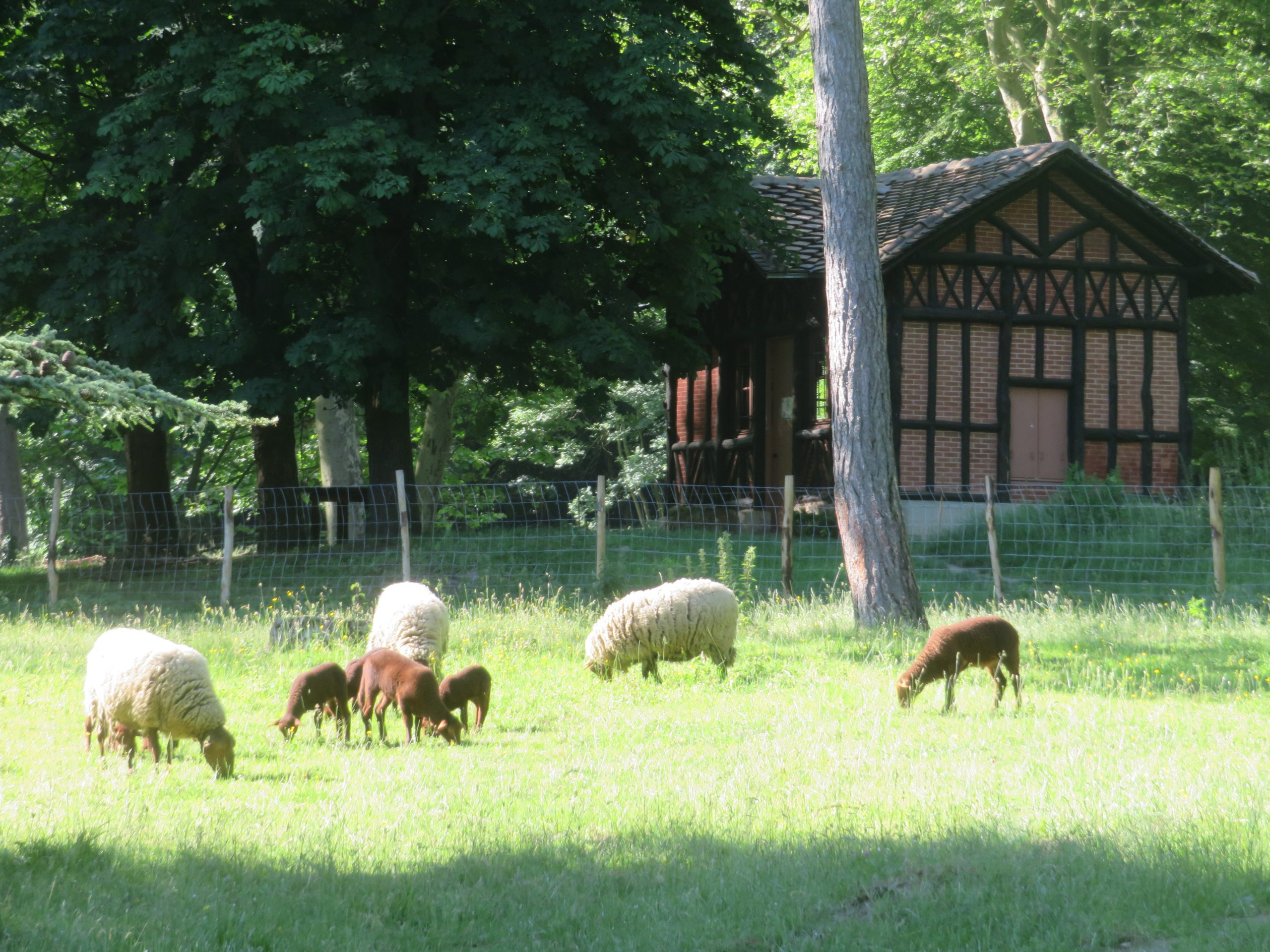 Troupeau de brebis solognotes, près du chalet de Combleval dans le parc de st Cloud, 92.
