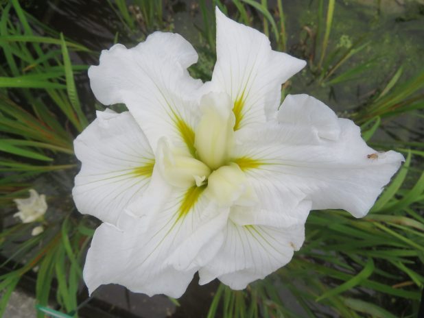 Iris japonais dans la zone inondable du jardin des iris, au parc de Bagatelle, 16e.
