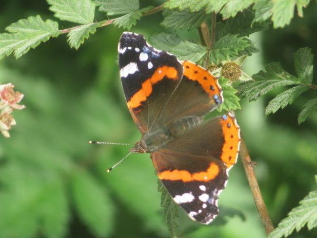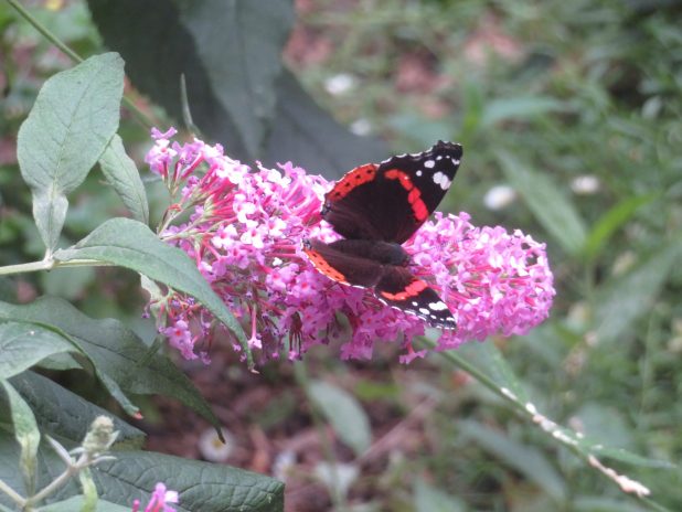 Vulcain butinant un Buddleja dans le potager du parc de Bercy, 12e.