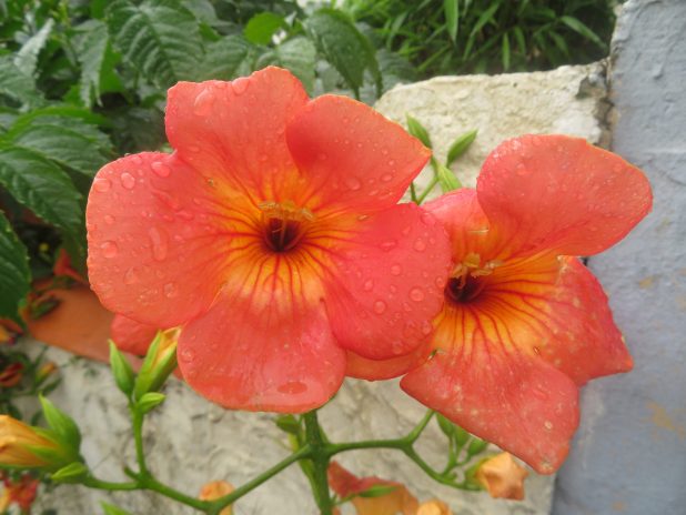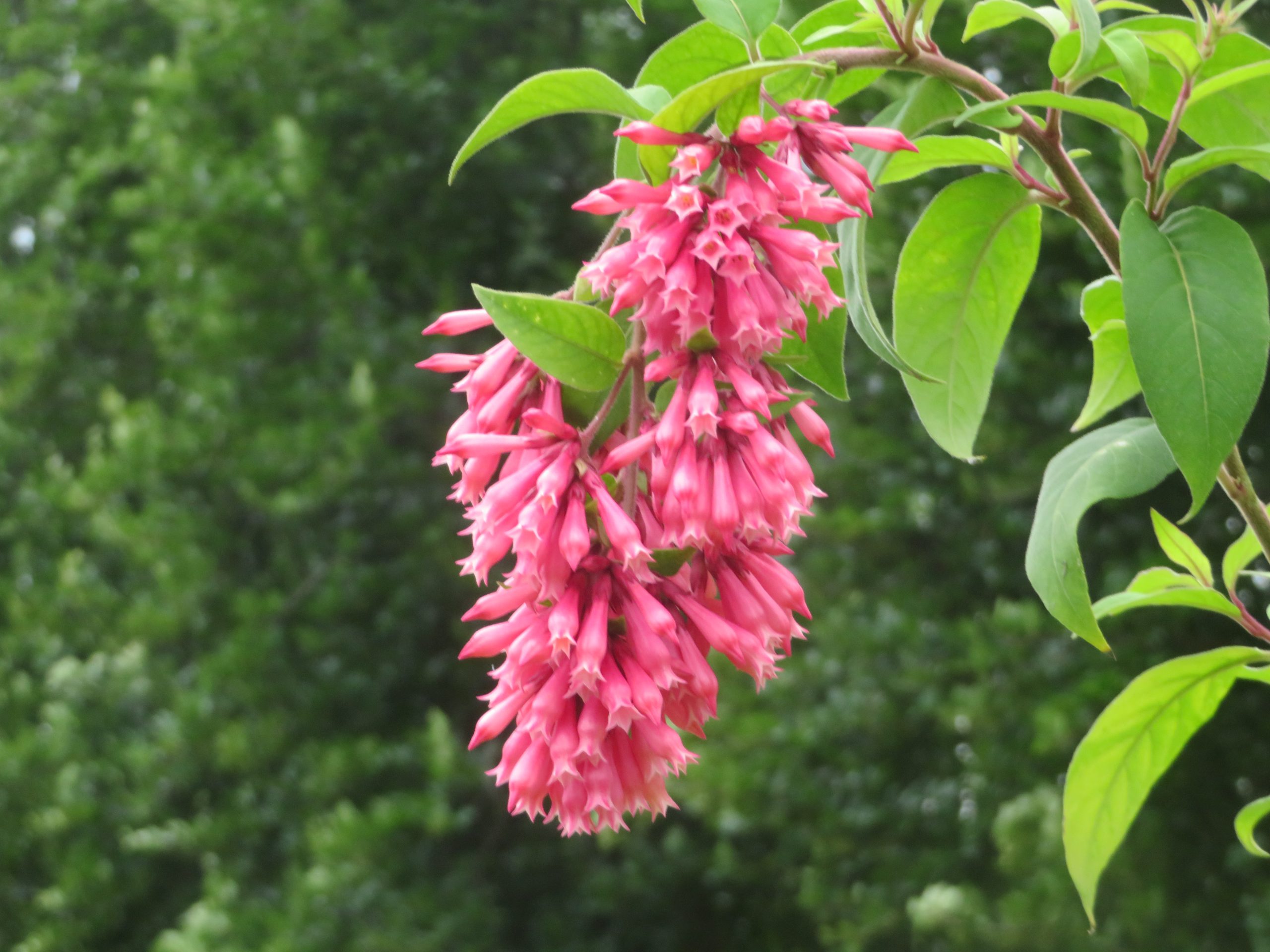 Belle grappe de Cestrum elegans, dans un massif d’été de l’école du Breuil, 12e.