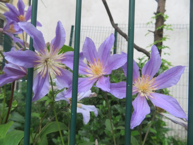 Jolies clématites, rue Stephenson, quartier de la Goutte d’Or, 18e.