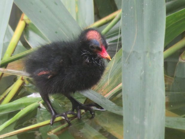 Poussin de poule d’eau, sur le lac du parc de Bercy, 12e.