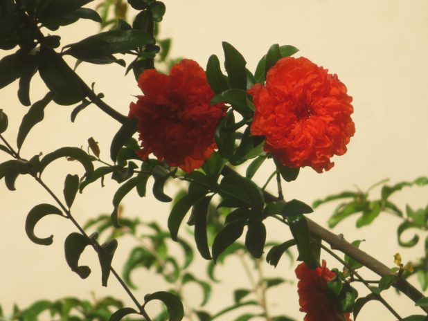Fleurs de grenadier, dans le clos des Blancs Manteaux, quartier du Marais, Paris centre.