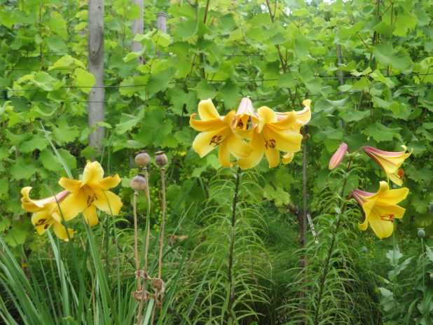 Spectaculaires floraisons des lys, dans la vigne de Montmartre, 18e.