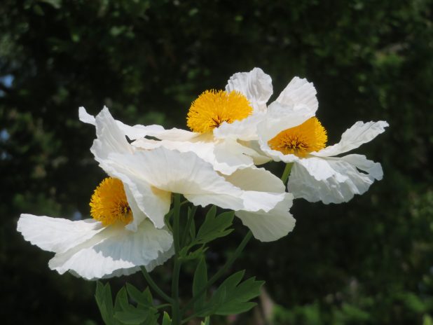 Trio de pavots en arbre, Romneya coulteri, à l’école du Breuil, 12e.