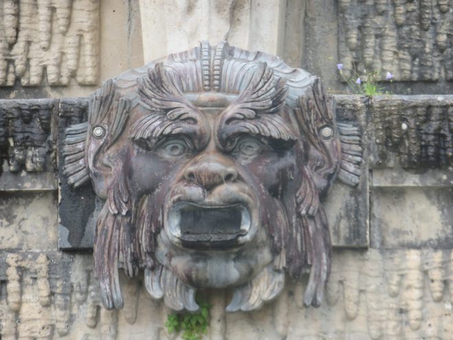 Mascaron sur la grande cascade d’Antoine Lepautre, 1665, au parc de st Cloud, 92.