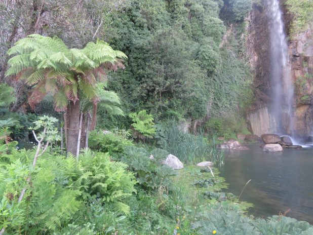Kiwi et Toona sinensis ‘ flamingo ‘, en bac au jardin Nelson Mandela, Paris centre.
