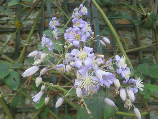 Clématite, Clematis heracleifolia ‘ Mrs Robert Brydon ‘, dans le jardin des Présentateurs, au parc de Bagatelle, 16e.